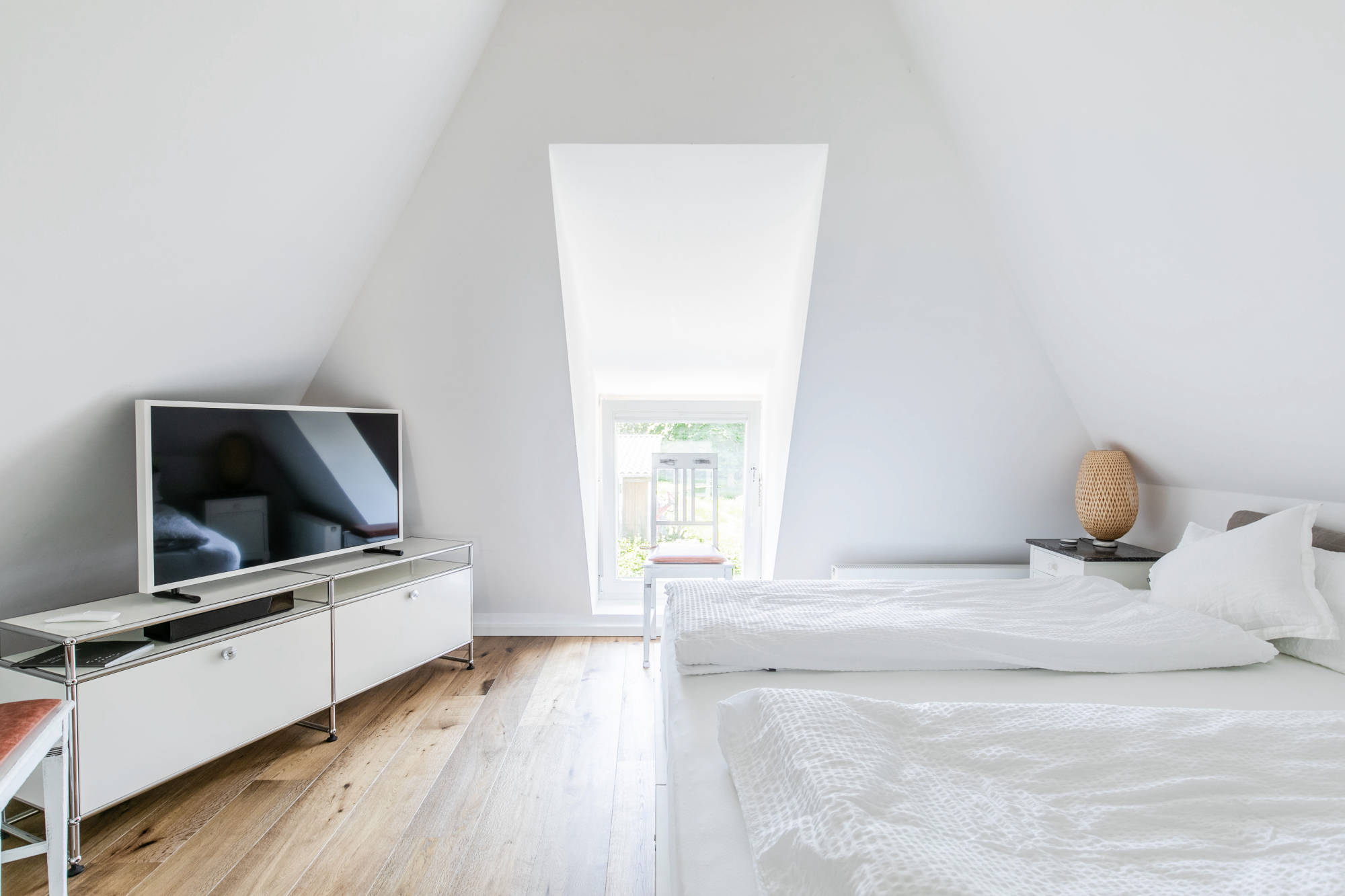 Die Küche ist mit einem 90cm Induktions SMEG Herd, sowie einer SMEG Kühl-/Gefrierkombination ausgestattet. Im Wohn-/Esszimmerbereich und im TV-Room haben wir u.a. mit Lampen und Leuchten von Tobias Grau gearbeitet. 2 kombinierbare BOSE Anlagen sorgen für den guten Ton – beim Fernsehen oder Ihrer Lieblingsmusik. Insgesamt stehen Ihnen 3 Samsung THE FRAME TVs zur Verfügung – da kann jeder das schauen, wozu er Lust hat – auch vom Bett aus.