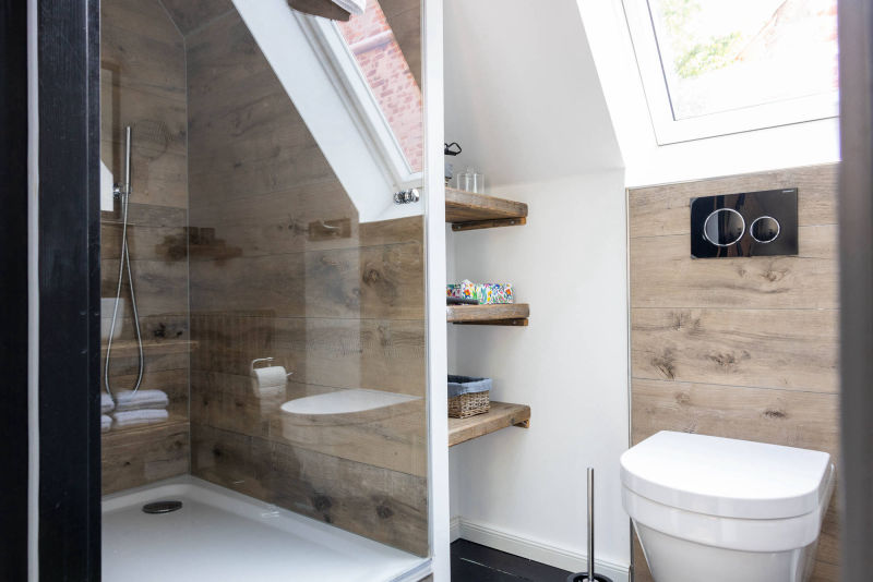 Die großzügige Sauna- und Badbereich im EG mit Badewanne und Walk-In-Dusche, Bademäntel, Saunahandtücher sind vor Ort.