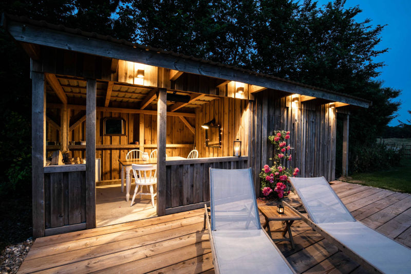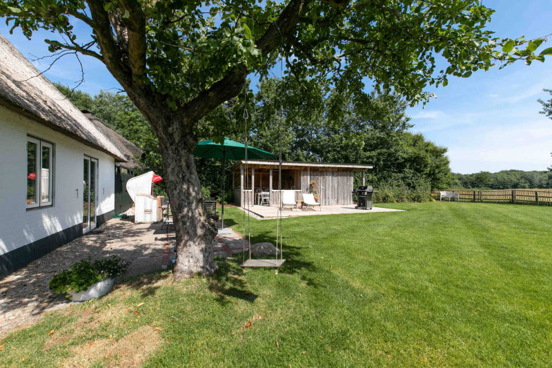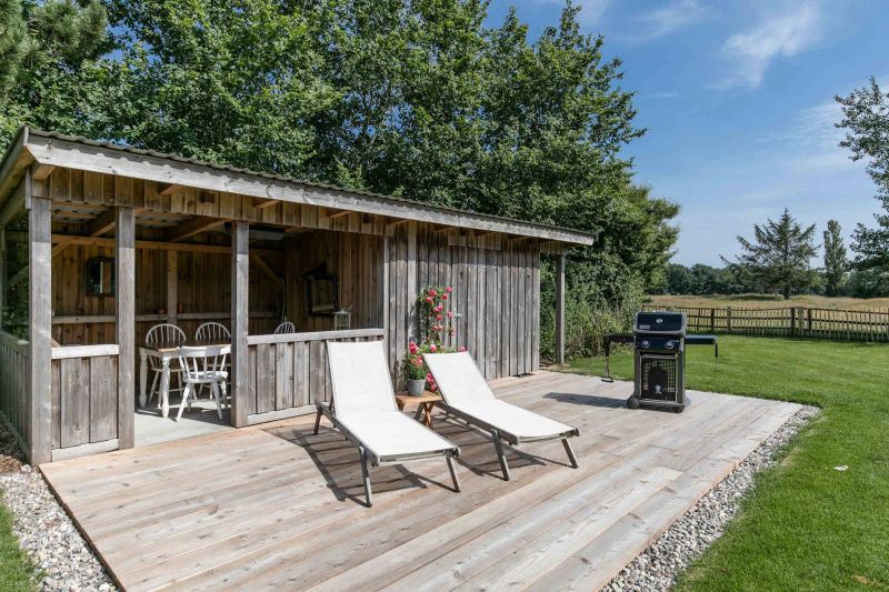 Das Haus hat mehrere nicht überdachte Außen-Terrassen (wenn die Sonne scheint…) und zusätzlich eine mit Dach (falls der Regen mal von der Seite kommt...). Gartentisch, Strandkorb, Liegen, Grill usw. – Jupp ist alles da – läuft…
