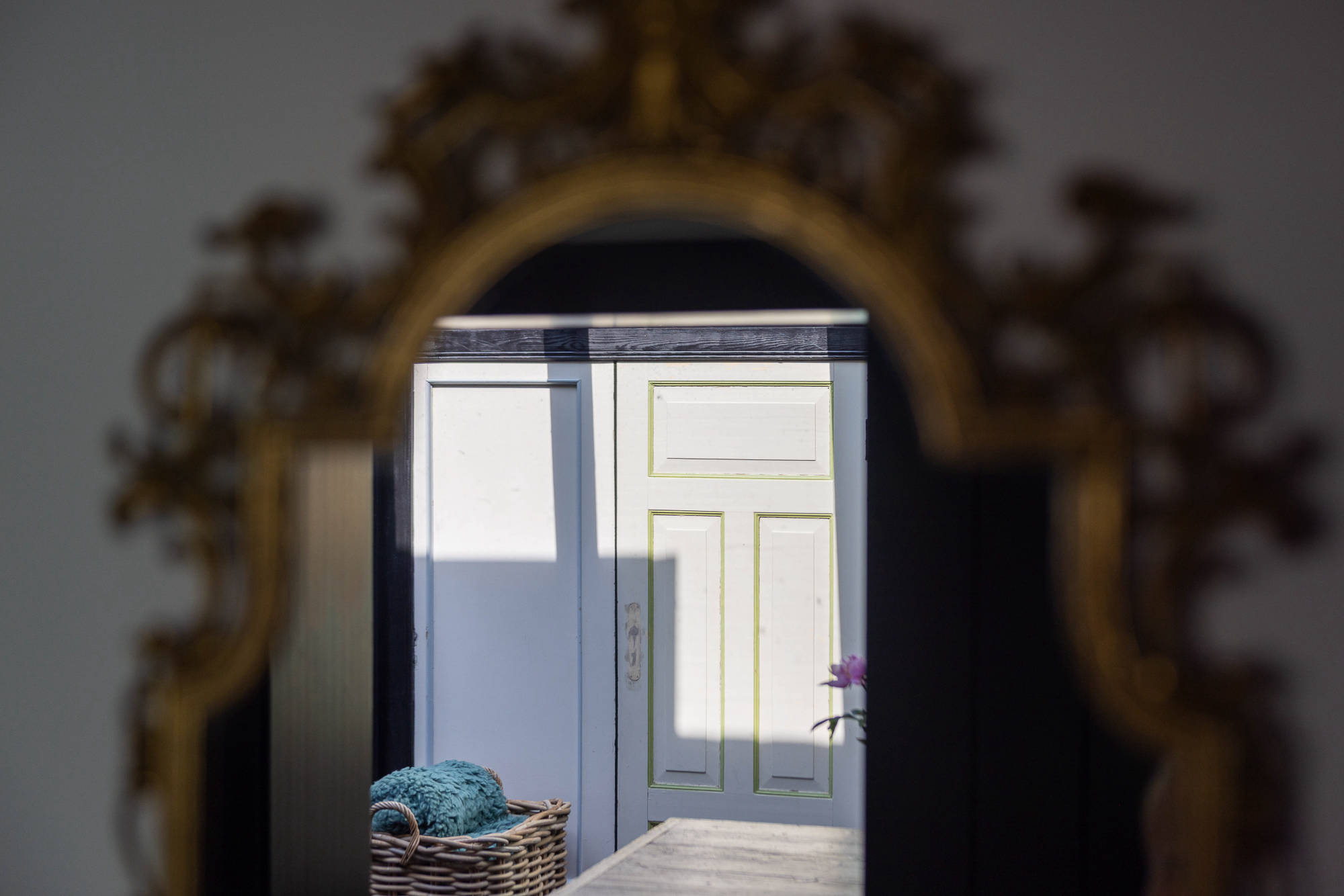 Wir verwandeln den Look und behalten das Aussehen, wir geben dem Haus die alten Möbel „restauriert“ zurück und fügen neu „alte“ Unikate hinzu. Wärme ins Haus bringt neben der neuen Heizung mit stilsicheren Heizkörpern, ein von uns wiederaufgearbeiteter Kachelofen, Sauna, Spiegel, Stoffe, Bücher, Küche, Wintergarten, Bad mit allem Pipa Po und die anderen von nah und fern zusammengetragenen Alltagsgegenstände bilden eine Brücke zwischen uns und den Bewohnern.