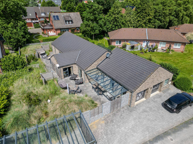 Ein Neubau im skandinavischen Stil auf einer Ebene – mitten in Tating-Dorf, dazu eine Sand-Düne mit Strandhafer – diese Kombination aus dänischem Charme und modernem Design, macht das Objekt einfach nur HYGGE.